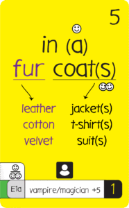 Five card sets that gradually increase in difficulty, guiding learners from simple sentences to complex grammar.